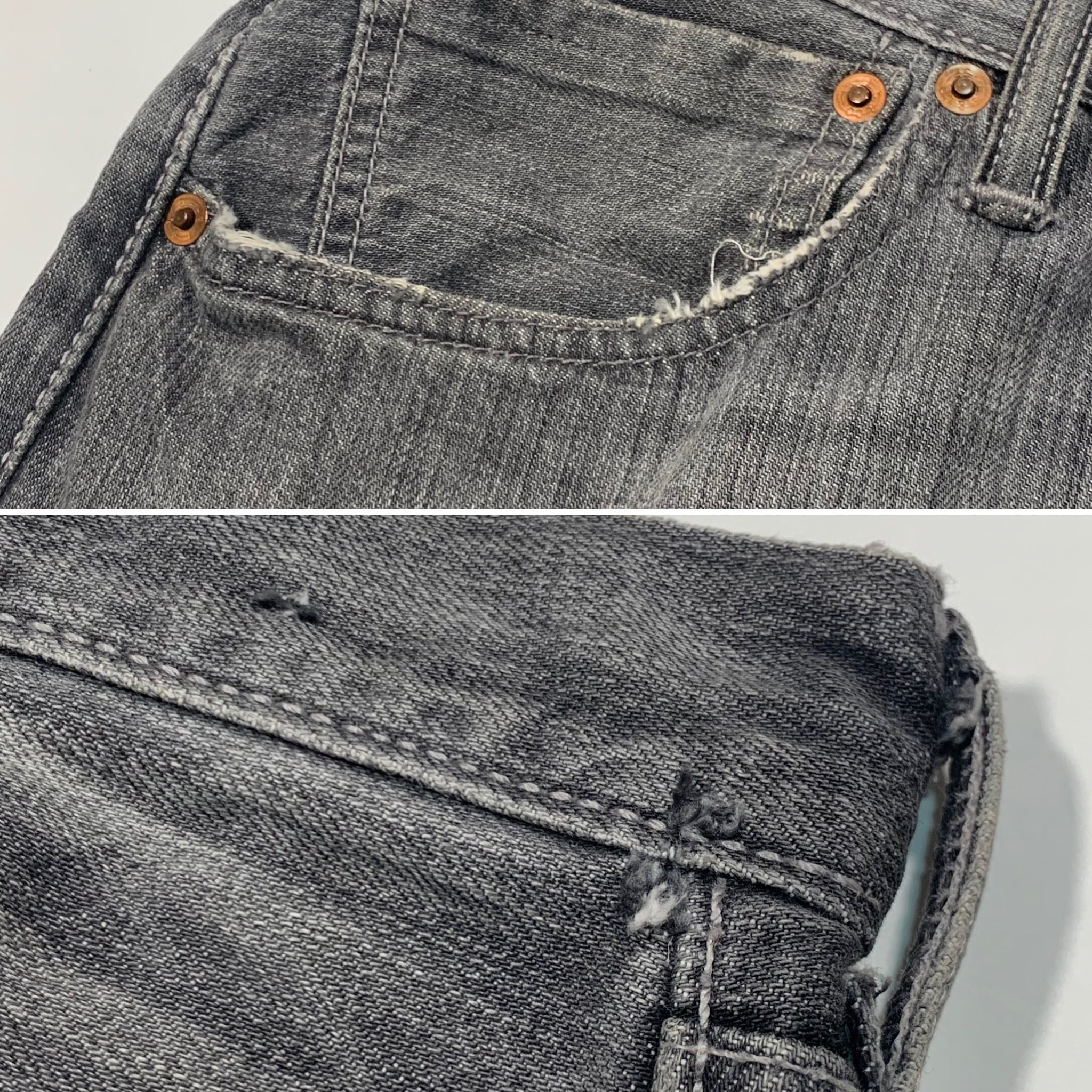 股下・バック右ポケット・バック左側のベルトループ部分にリペア跡、