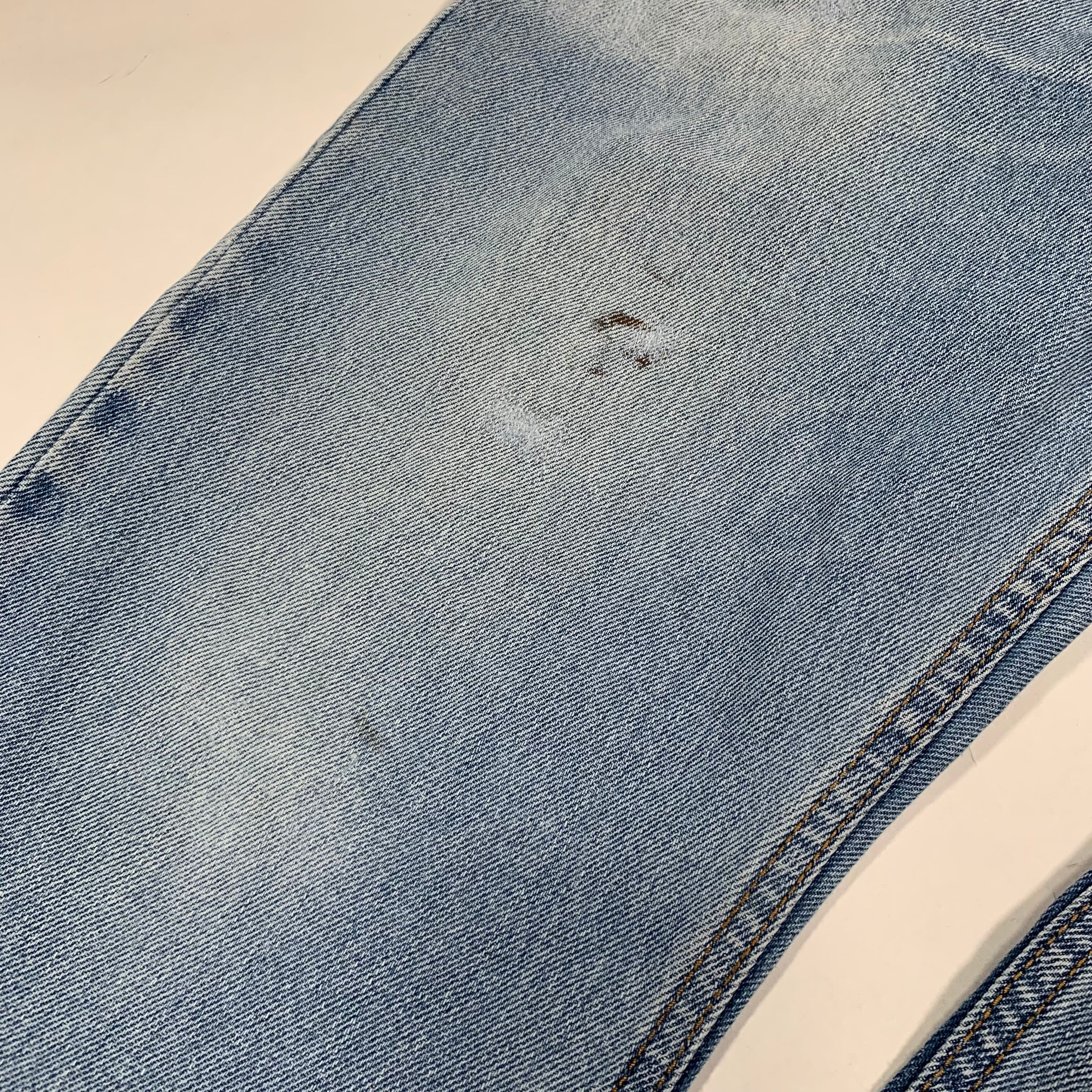 右後ろポケットにダメージ、右前腿に若干の汚れがございますが