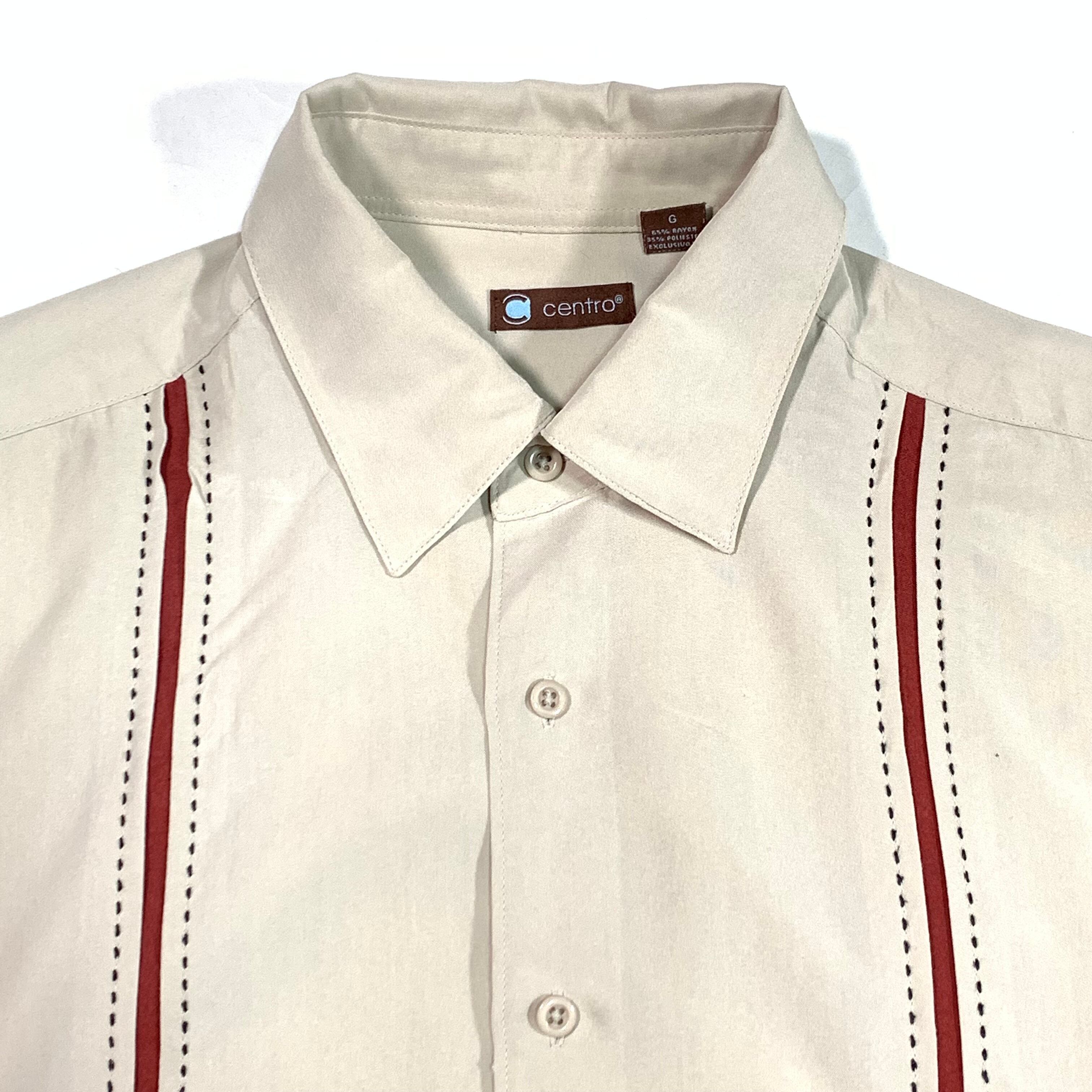- 8919 centro 半袖シャツ ベージュ ステッチ タック 切替 L
